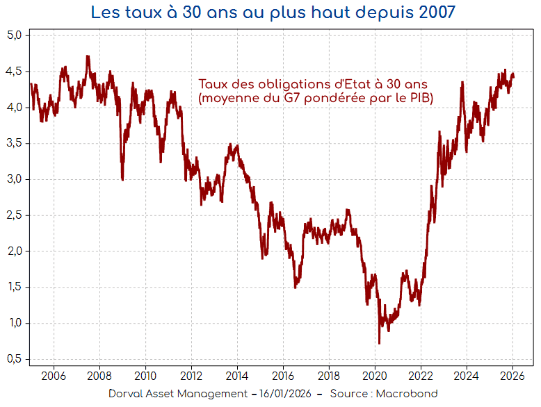 Cette dynamique témoigne d’une certaine défiance des investisseurs par rapport au risque obligataire. L’enquête de Bank of America du mois de décembre 2025 le confirme, 19% des gérants interrogés voyant une hausse déstabilisante des taux à long terme comme le risque principal pour les marchés, après celui d’un éclatement de la « bulle » de l’IA (38%).