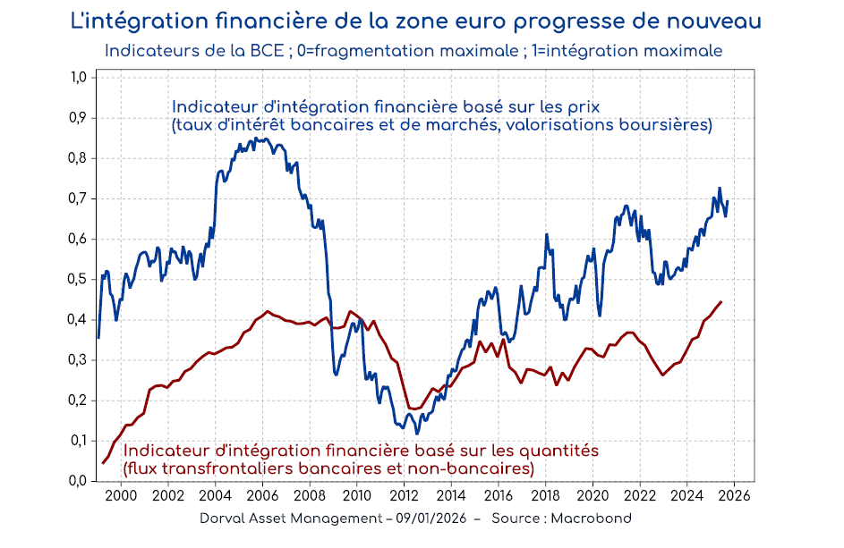 Fruit du contrechoc des crises bancaires et souveraines des années 2008-2012 et de la fragilisation du statut du dollar, la prospérité financière de l’Europe représente un atout de taille en ce moment économique et géopolitique particulièrement compliqué. Les risques principaux susceptibles de fragiliser cette prospérité semblent surtout politiques – montée de l’AfD en Allemagne, situation politico-budgétaire en France, etc. – même si le narratif anti-euro a beaucoup régressé au cours des dernières années. Pour le moment, cependant, les fortes pressions extérieures ont au moins l’avantage de neutraliser ces risques de divisions.