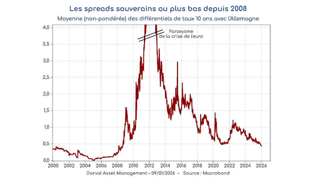 Le retour en grâce des pays de l’Europe du Sud constitue la dynamique principale de cette convergence des taux à long terme. Sortis des programmes sévères de consolidations budgétaires et boostés par le plan de relance européen conçu pendant le Covid, ces pays voient leur notation financière s’améliorer sensiblement.