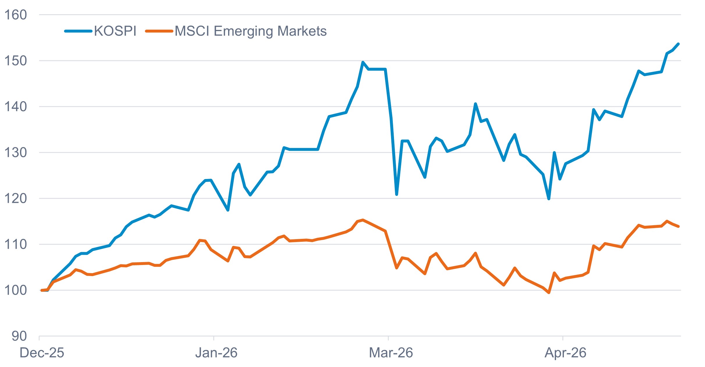 Source : Datastream, 31/12/2025-24/4/2026